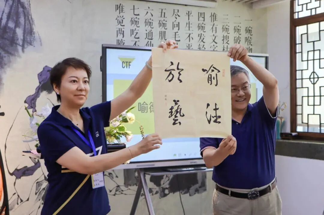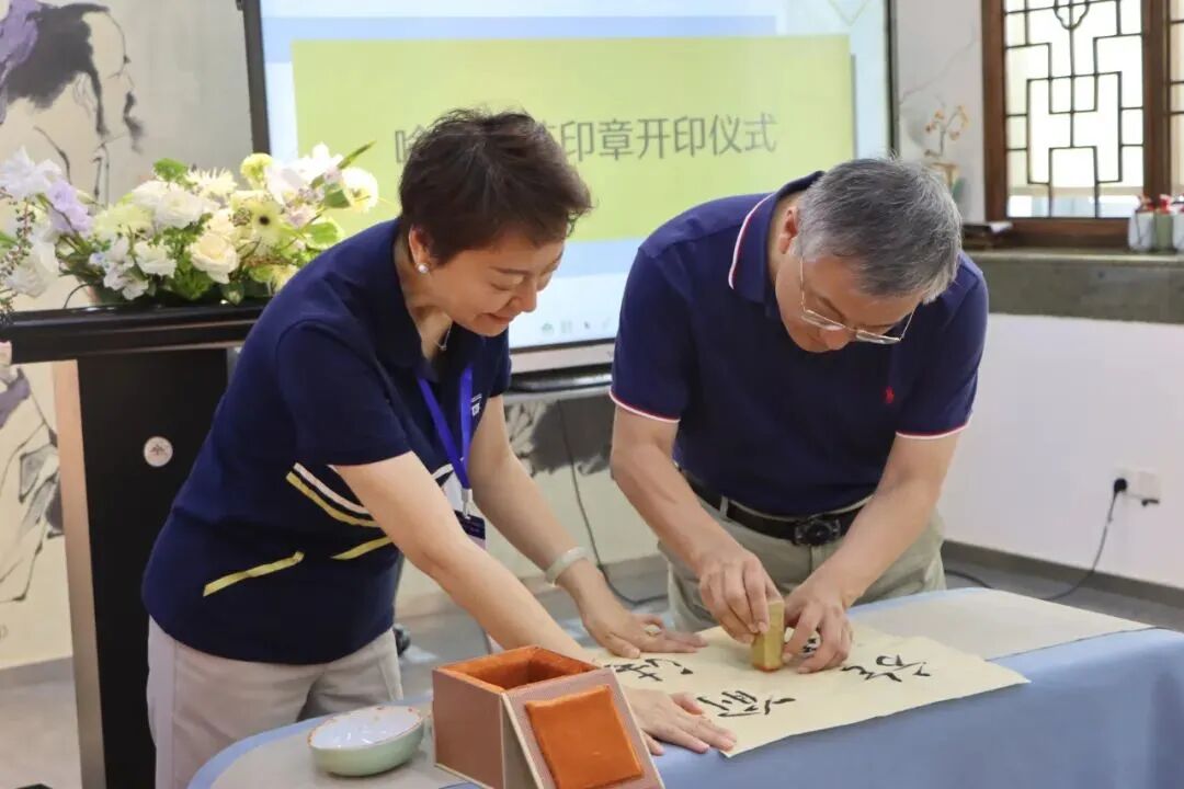 随后,吕明新部长和朱莉总监共同为“喻德于艺”项目定制篆刻印章开印。这幅书法作品由山东大学中华传统文化研究与体验基地学术顾问、文学院教授、博士生导师徐超先生特为“喻德于艺”赋能课程题写。