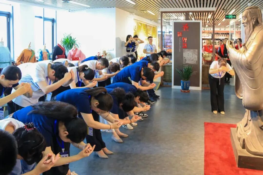 在陈鹤龄老师的带领下,大家一起面向孔子像行庄严的传统拜师礼,在三拜三兴的仪轨中,共同感悟教师这一群体的历史传承与使命,在追思先人中反躬自省,涤荡心灵,提升自己的精神境界。随着司礼官一句“礼成”,开班仪式圆满完成。