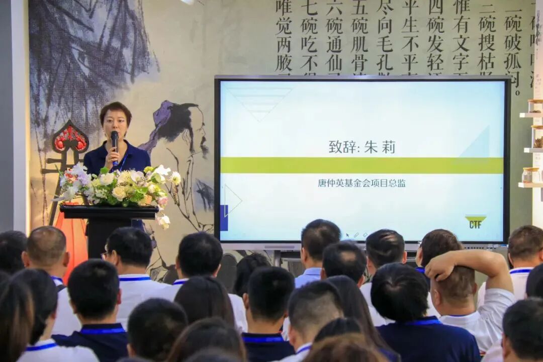 随后,唐仲英基金会项目总监朱莉女士致辞。她首先介绍了唐仲英德育奖学金和爱心奖学金,引出了赋能课程的由来。中华传统文化博大精深,源远流长,希望老师们可以把在课程中学到的东西带回当地学校,在教学中继续探索,不断学习,并对项目执行团队和志愿者表示了衷心的感谢,最后她祝愿此次活动取得圆满成功。