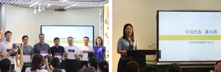 学员代表黄小燕校长发表了参加此次活动的学习感受。她结合自己对教育的思考进行了复盘,并分享了自己担任爱心辅导员的经历以及与唐爱大家庭相遇的故事,表达了对唐爱大家庭不断壮大的美好祝愿。
